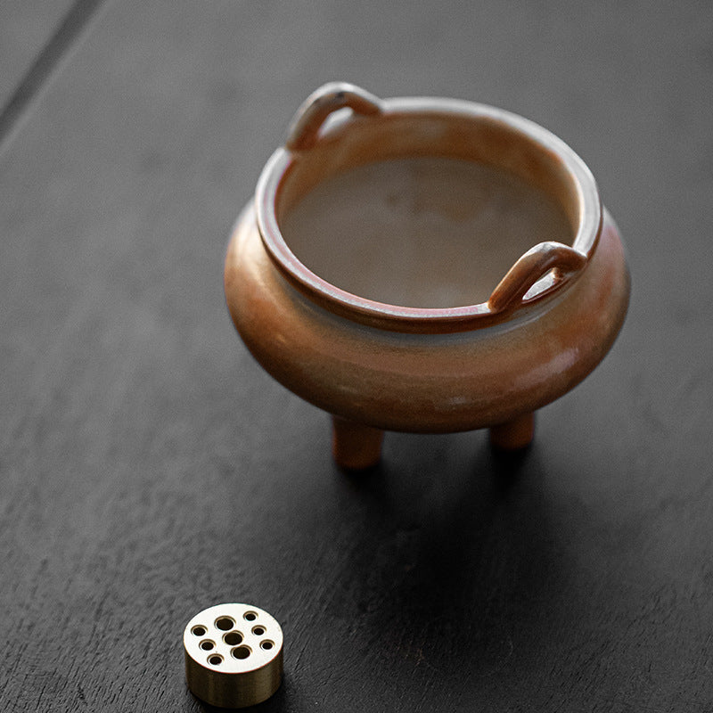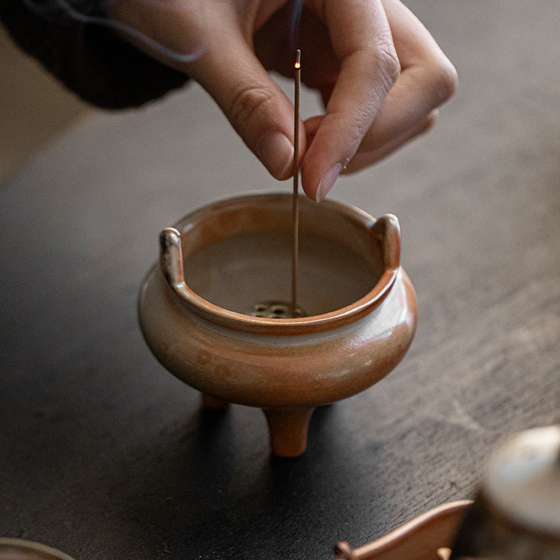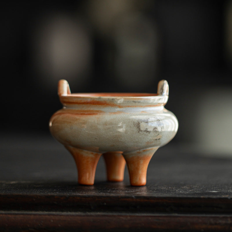 Discover tranquility with this handmade ceramic incense burner , featuring a retro tripod design . Ideal for aromatherapy at home , it brings harmony and spiritual energy to your space.
