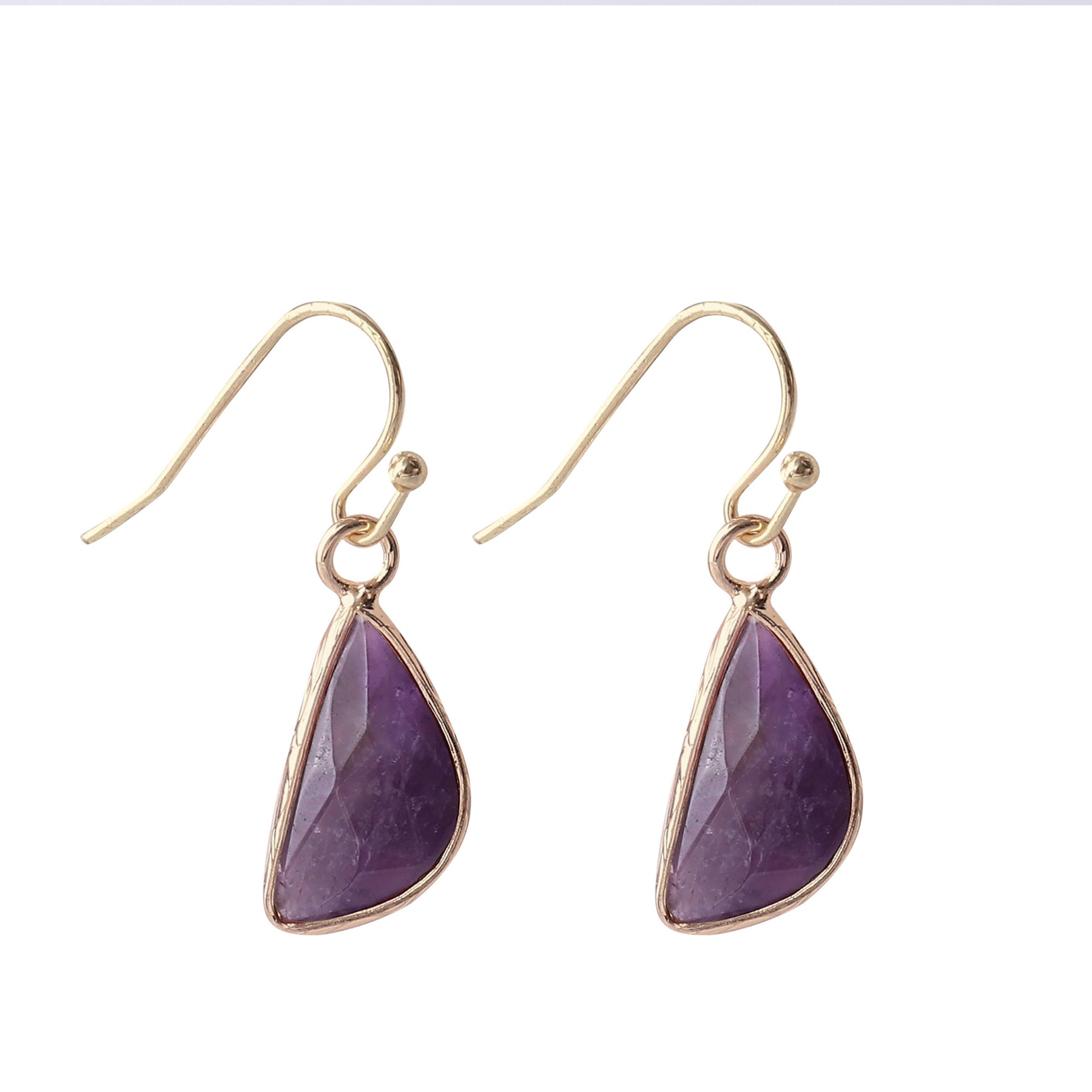 Thesenatural stone earringscontributeeleganceandwelfareThanks to its genuine minerals and sophisticated design.gold finishenhances thefaceted stonereflecting light and attracting attention. They are lightweight, comfortable, and have a length of3 cmIdeal for any occasion. The semicircular hooks ensure a gentle hold, and maintenance is simple: just clean with a soft cloth and avoid contact with perfumes or water to preserve their shine and natural vibrancy.