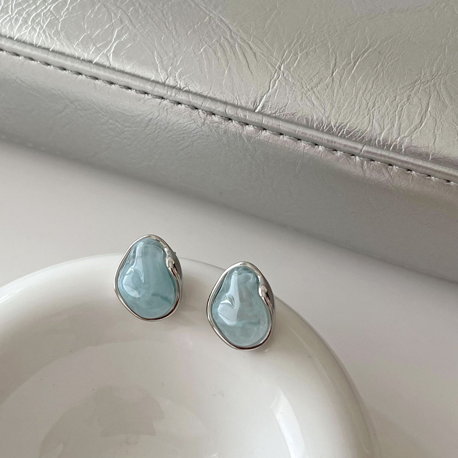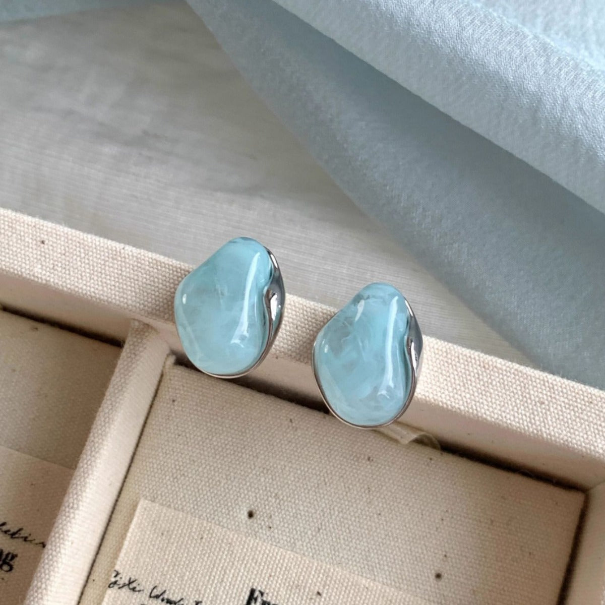 Theseversatile earringsThey are made with high-quality, lightweight materials and amodern designwhich brings an air of simple and understated luxury. Its tonesmint blue and icesymbolizecalm, serenityand help to attractgood energyto your everyday life. The piece is suitable for wearing for hours thanks to itslightweightand their secure closure. Simply wipe them gently with a cloth to keep them in perfect condition and preserve their shine and beauty.