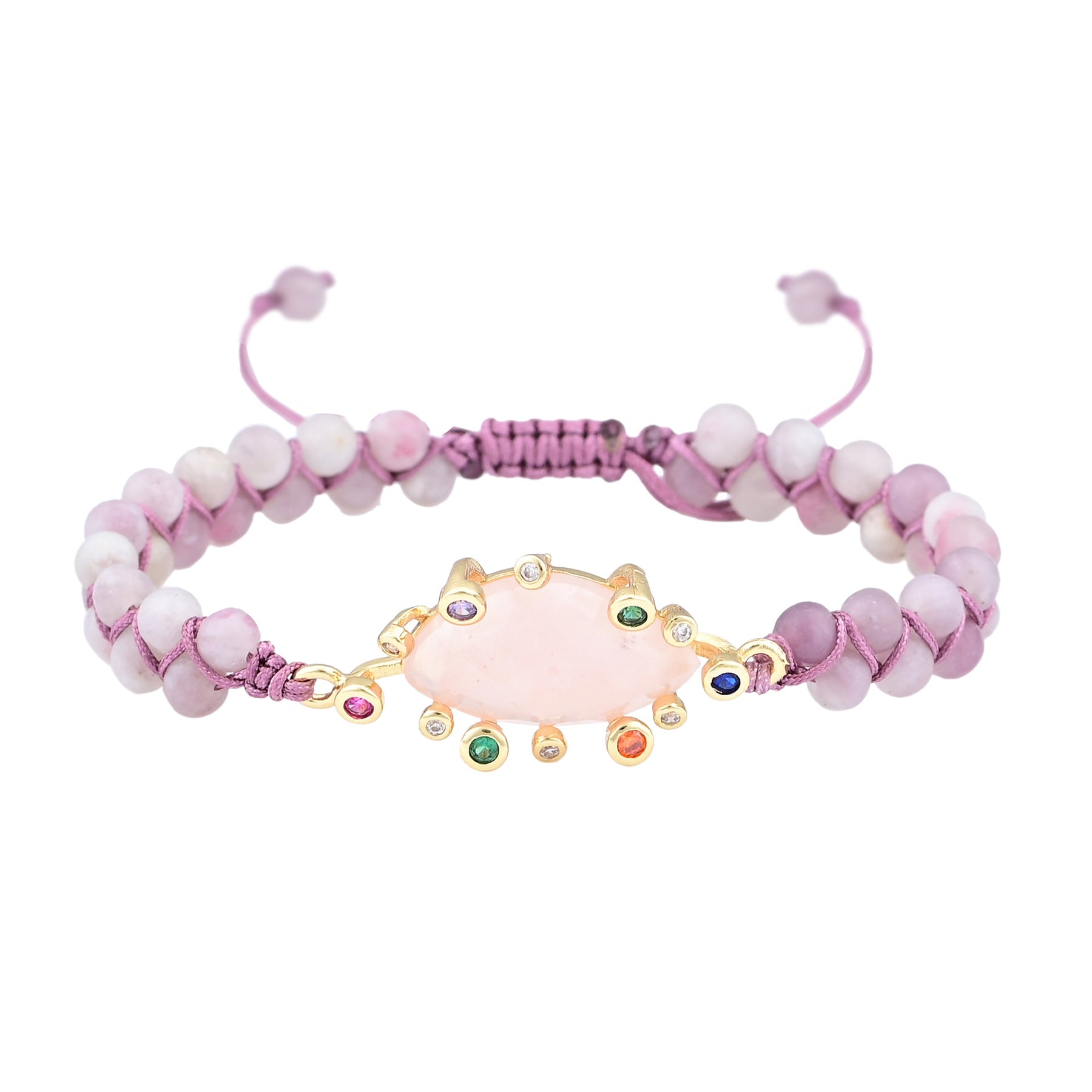 A jewel that radiates softness and harmony: natural rose quartz , lilac beads and multicolored crystals in a handmade adjustable design.