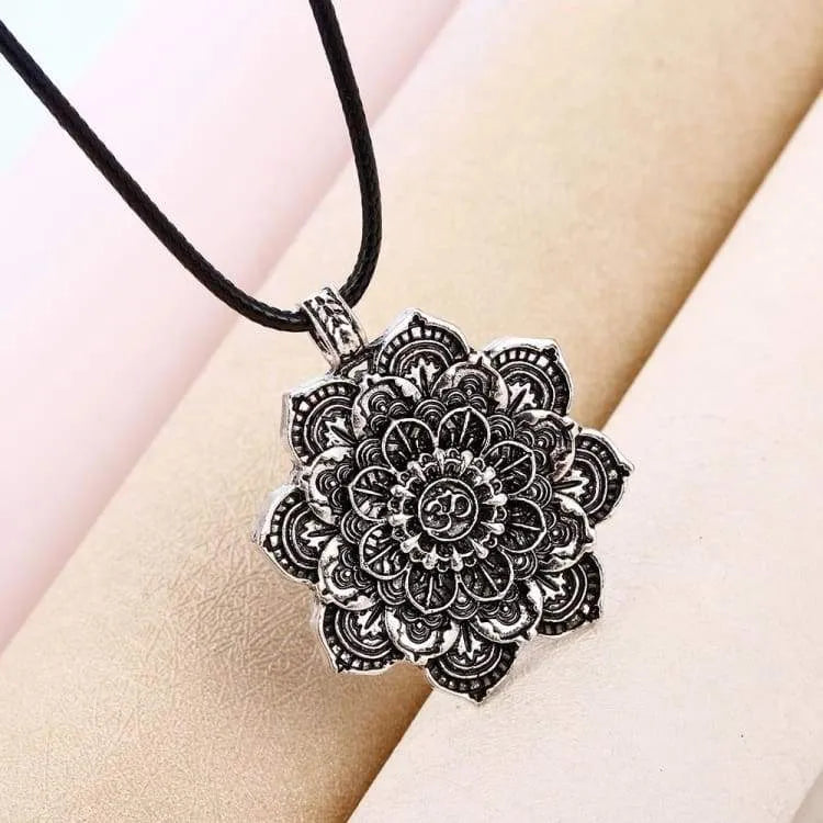 At the center of the pendant is the Om mani padme symbol, the mantra of compassion. It is one of Tibet's national mantras and is sacred and widely known throughout the world. It is also an incredibly powerful mantra with a very profound meaning; it is said to contain the entire teachings of the Buddha.